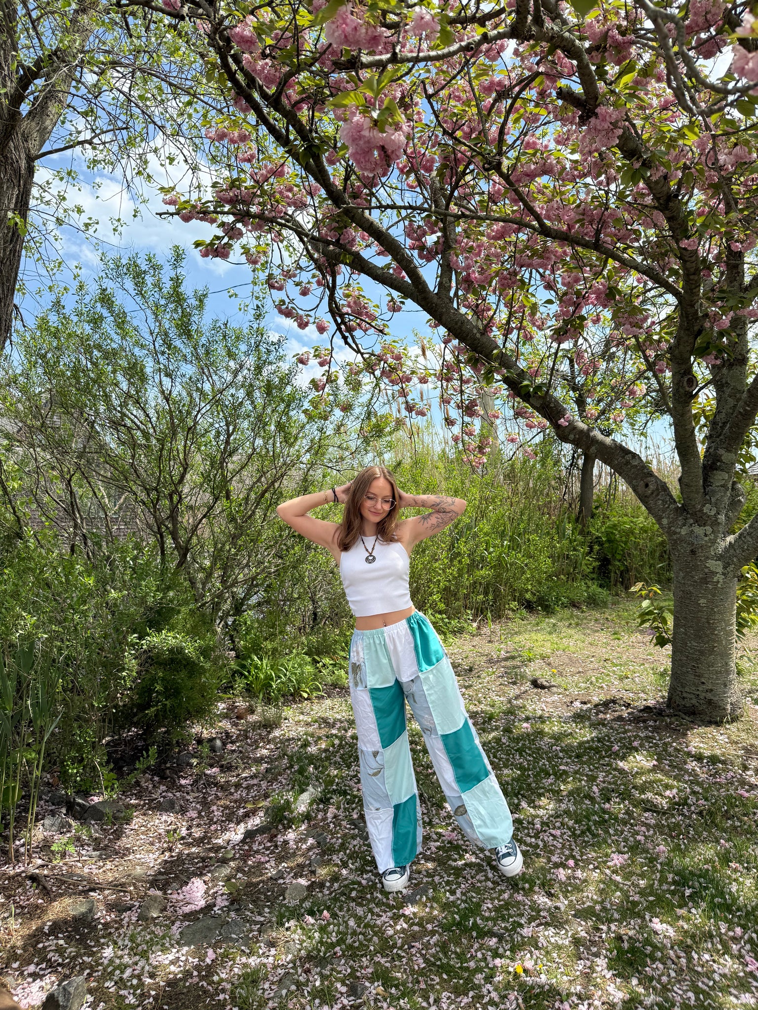 yes they have pockets! adjustable ankles for wide leg or cinched effect.